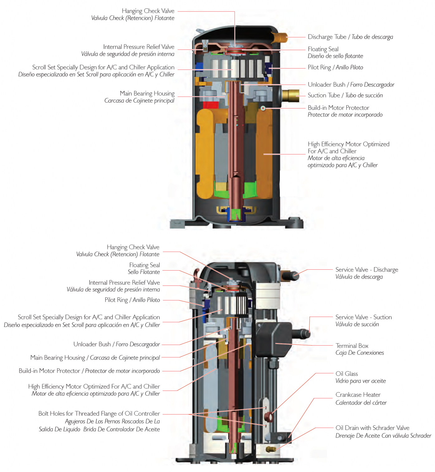 - Specific design for A/C and Chiller, not only the scroll set but also the unit, precise product-definition based on customer's need.