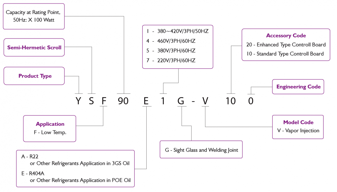 | YSF series Semi-Hermetic Refrigeration Scroll Compressor for lower temperature application | ||||||||